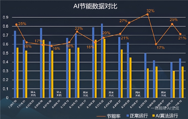 据介绍,此类建筑分区多、空间大,在空调系统管理中人工操作难以实时精准的调节。而AI多联机能根据人流量、温度变化自动调整。对比电表数据,AI监测数据误差<5%,整体节能率21.1%,每月累计省电数千度。