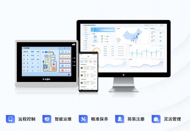 我们不仅是一块屏,更是连接未来的智慧枢纽。提出“远程控制+智能运维+精准保养+简易注册+灵活管理”的一站式解决方案,构建出气加加物联网平台,重新定义空压机的管理新方式。