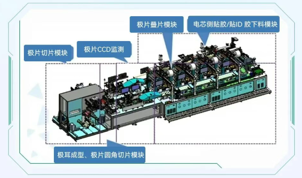 切叠一体机集制片、叠片、下料于一体,通过Z字叠片工艺完成电芯成型。